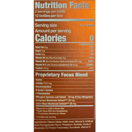 K-Shot Focus Energy Drink Shot – Kratom Extract, Nootropic Blend & Mushroom Energy